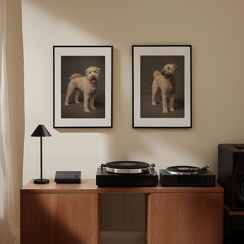 My role is to guide the process—from planning to final artwork—so it feels calm, intentional, with some fun thrown in for good measure. We focus on who your best friend is, your connection with them, and what you want to see on your walls today, and long after your session is over.